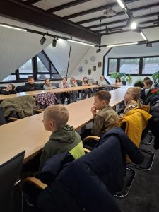 Die Kombiklasse 3/4 und die 4. Klasse der GS Grub a.Forst beschäftigten sich im HSU-Unterricht intensiv mit dem Thema „Gemeinde und ihre Aufgaben“. Daher lag es nahe, auch dem Rathaus und den Ämtern unserer Heimatgemeinde einen Besuch abzustatten. Am 20. November 2025 durften sich die Klassen persönlich informieren. Es waren die Bürgermeister unserer beiden Gemeinden Grub a.Forst und Niederfüllbach, Herr Wittmann und Herr Büttner, anwesend und nahmen sich viel Zeit für unsere Fragen. Sie gaben bereitwillig Auskunft darüber, was ein Bürgermeister für vielfältige Aufgaben zu erledigen hat und was in den beiden Gemeinden so alles los ist. Im Sitzungssaal durften sich die Kinder über den Gemeinderat informieren und auf den Plätzen der Gemeinderäte/-innen Platz nehmen. Zum Abschluss wurden alle Kinder mit einer kleinen Brotzeit verwöhnt.